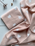 Пелюшка муслінова 90 х 80 см Сердечки білі на бежевому