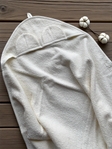 Капюшон забезпечує комфортне висихання голови, а натуральний гіпоалергенний матеріал дбайливо піклується про чутливу шкіру дитини.